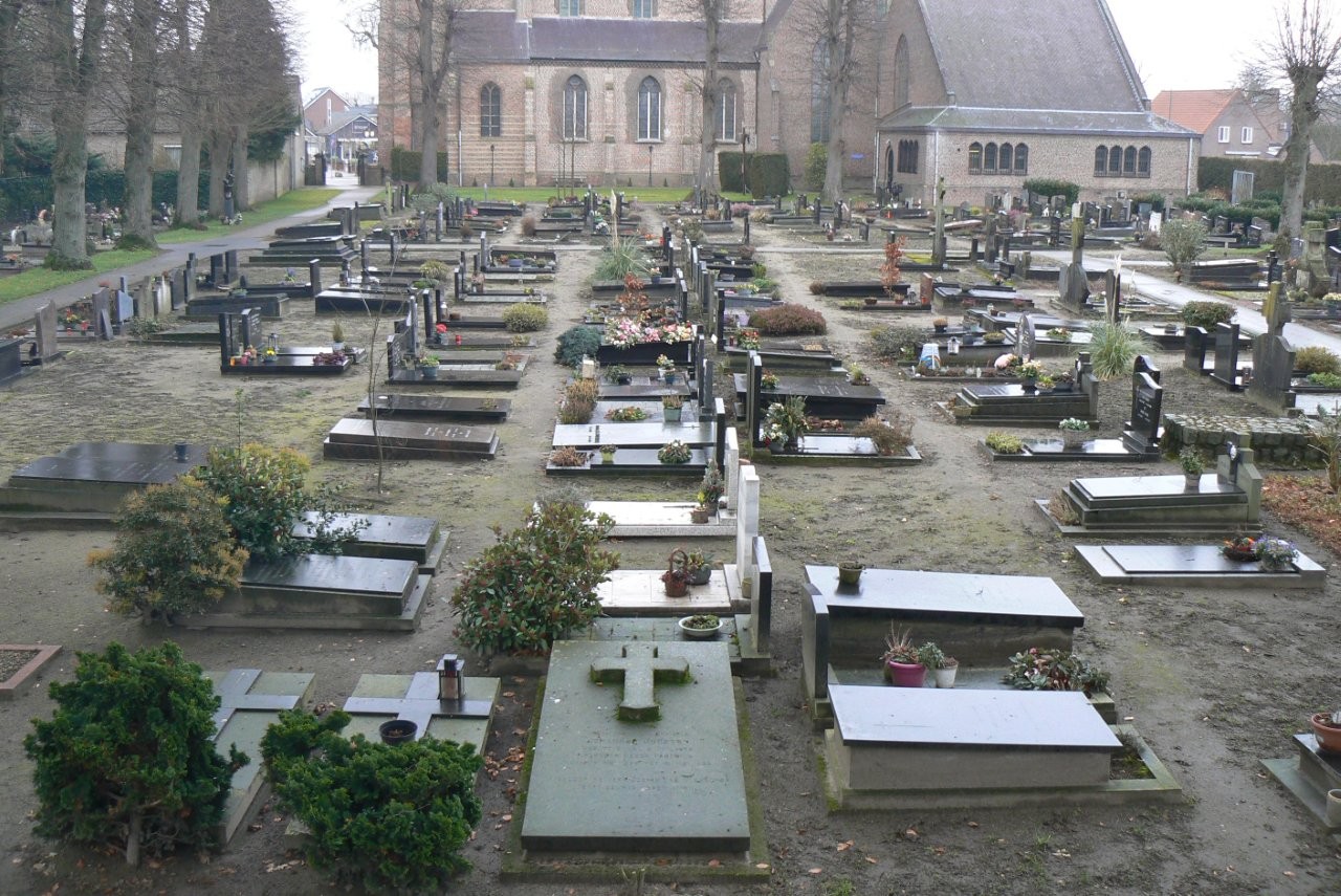 HistorieHet kerkhof ligt ten zuiden van de Willibrorduskerk. Alleen de pastoors die voor 1931 zijn overleden liggen op een rijtje aan de voorzijde van de kerk. In het zuiden van het kerkhof bevindt zich een calvarieberg met houten kruisbeeld.
